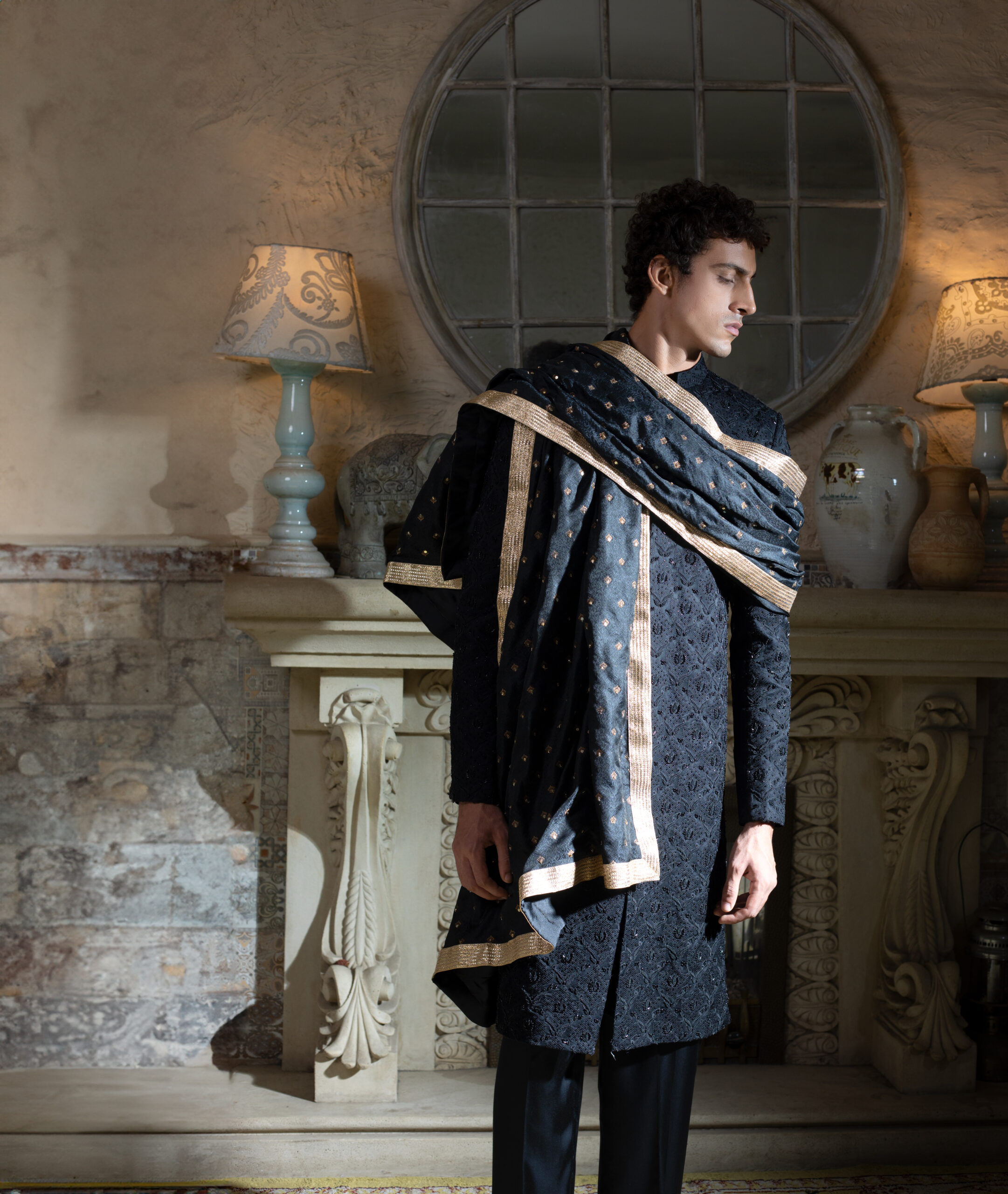 Korean silk on jaal thread embroidered hand work on ban.